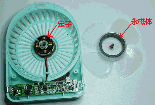 2.單相直流無刷電機(jī)原理是:同極相斥,異極相吸。這兩個(gè)磁極是通過電磁鐵(定子)和永磁鐵(轉(zhuǎn)子)來形成,所謂電磁鐵就是通電就會(huì)有磁場產(chǎn)生,在單相電機(jī)里面,也就是定子(不動(dòng)的部分),如下圖所示,是漆包線繞在硅鋼片上。而永磁鐵則貼在扇葉(轉(zhuǎn)子)上。