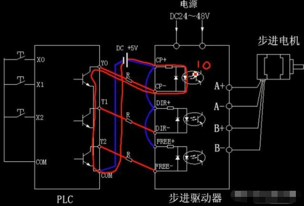 步進電機,步進驅動器和PLC中間的聯接: