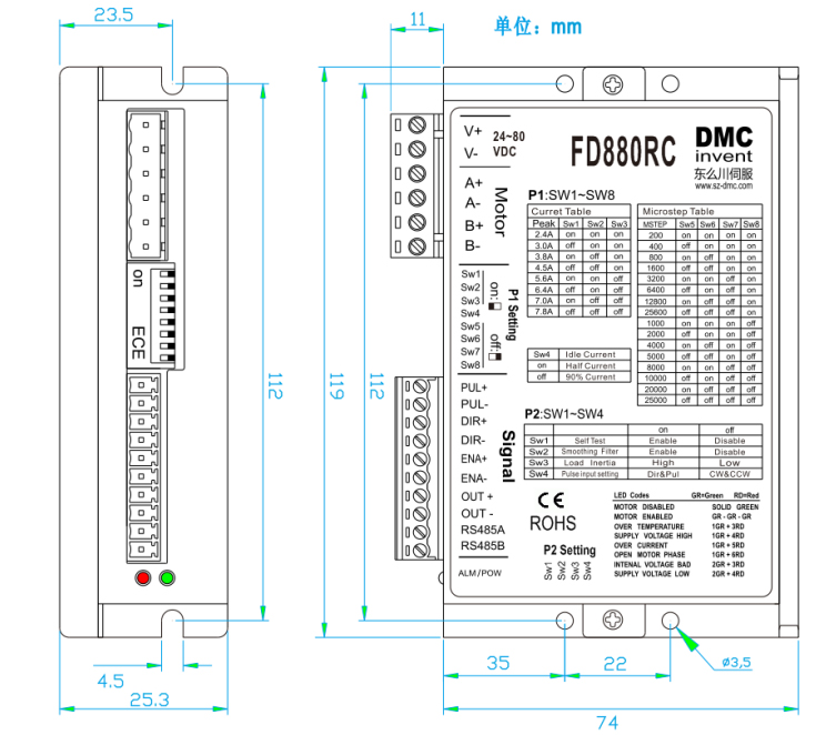 ●支持DMC2配置軟件平臺,方便有特殊要求客戶對驅(qū)動器進行配置