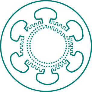 為使轉(zhuǎn)、定子的齒對(duì)齊,定子磁極上的小齒,齒寬和齒槽和轉(zhuǎn)子相同。
